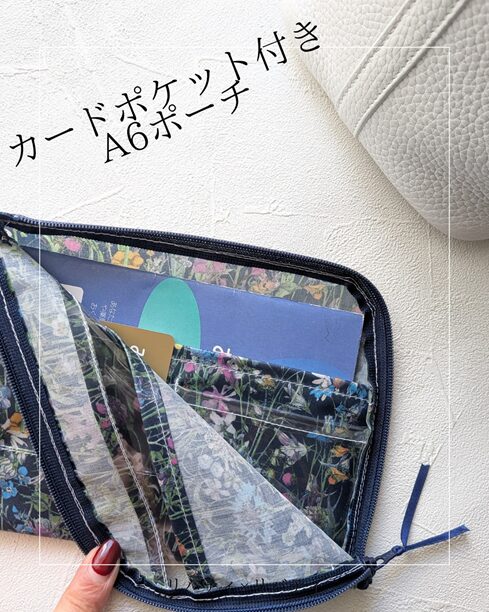 接触性蕁麻疹で皮膚科に通っているため、私自身もお薬手帳を持ち歩くことが増えました。診察券とマイナンバーカードを整理してまとめておけたら…と思い、このカードポケット付きA6ポーチを実際に使っています。
