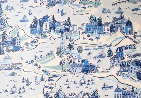 中でも「アドベンチャー・コースト」は、北ウェールズのイタリア風の村〈ポートメイリオン〉の壮大な景観から着想を得て、リバティのスタジオで手描きされたもの。