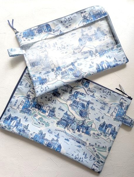 #アドベンチャーコースト #シャウエンブルー #ユニセックスポーチ #ヨコハマハンドメイドマルシェ #リバティ #リバティのポーチ #リバティプリント #リバティ柄 #リヴィエラコレクション #地図柄 #限定アイテム #青のリバティ柄 #風景柄