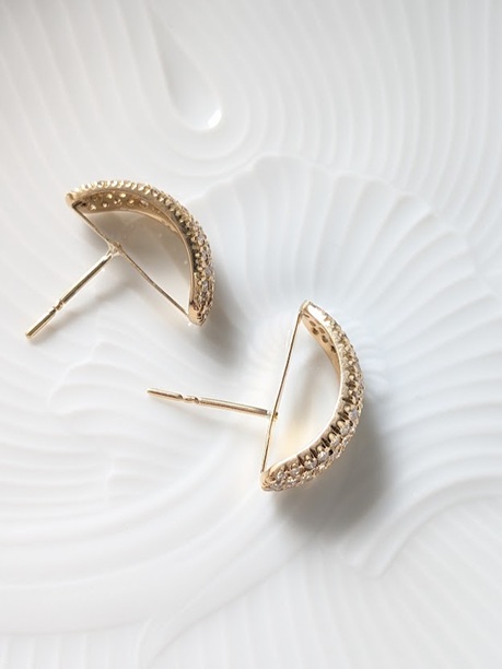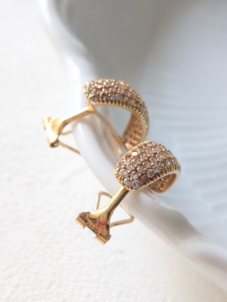 立派なダイヤがぎっしりと留められた合計1カラット以上のイヤリングがあまりにきれいで。