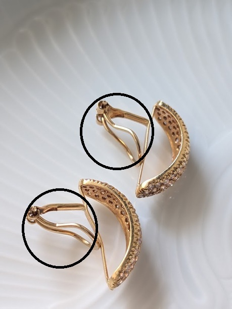 キャッチは、以前紛失してしまったピアスの、手元に残っていたものを活用しました。イヤリングとして外したパーツにはK18の刻印が入っていたため、本体裏にあらためて刻印を。