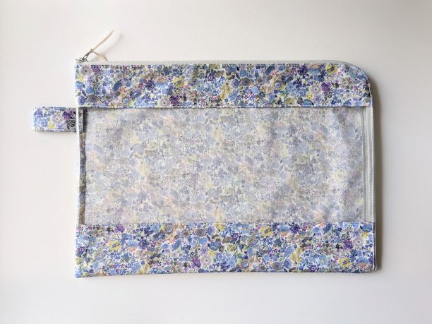 A4 L字ファスナークリアポーチ クラシックガーデン リバティ ラミネート ♡リバティのクラシック・デザインから厳選された花々を縮小しソフトな水彩で手描きし、クラシックな花々の草原を表現