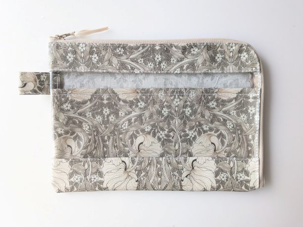 B5 L字ファスナークリアポーチ ピンパネル ウィリアムモリス ラミネート