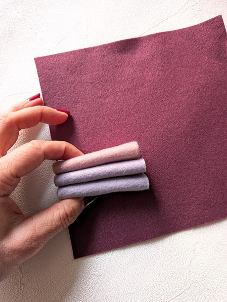 まず、ケースの横幅に合わせてフェルトをカットし、くるくると巻いてクッションを3本作ります。