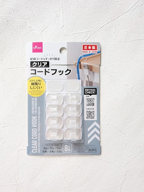 ケース本体の蓋裏にコードフックを貼り、そのフック部分がフェルトの切り込みから出るように差し込みます。その上からフェルト全体を両面テープで固定。