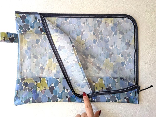 書類用ポーチという実用的なアイテムも、リバティプリントで仕立てることで持つ楽しさのあるポーチに仕上がりました。