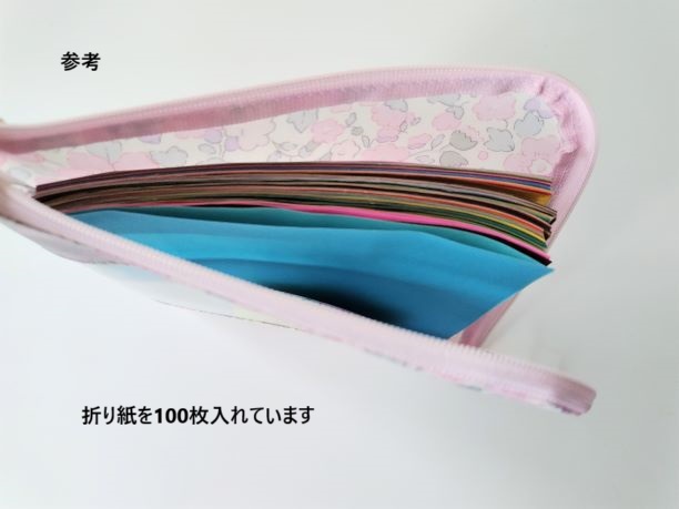 この折り紙ポーチは、100枚以上の折り紙がすっぽり入るサイズ感。