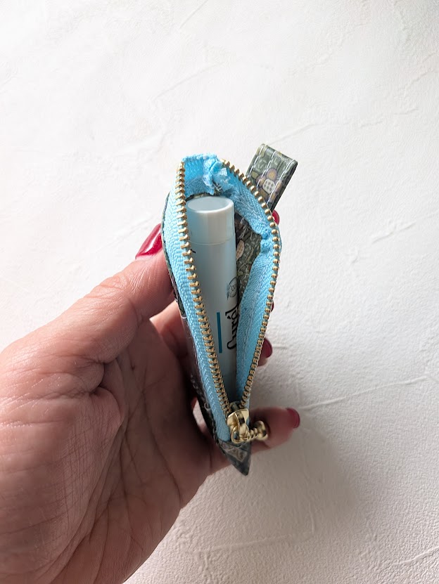 完成したのは、縦約11cm × 幅4cm弱の、とてもコンパクトな縦型ポーチです。