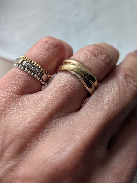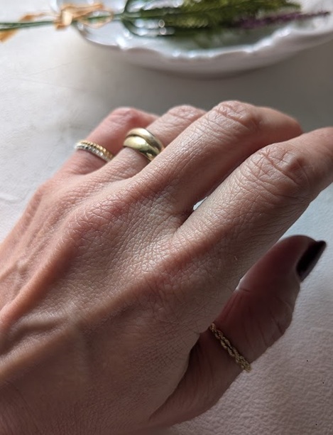 私はその日の気分で、同じリングを人差し指にしたり、中指にしたりして楽しみたいタイプです。そのため、薬指やピンキー以外のリングは人差し指サイズで購入することが多いのですが、指を変えると、どうしても少し緩くなります。