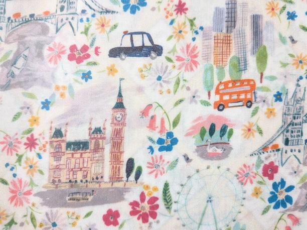 観光名所だけでなく、ロンドンの日常の空気感が丁寧に描き込まれているのが、この柄の魅力。