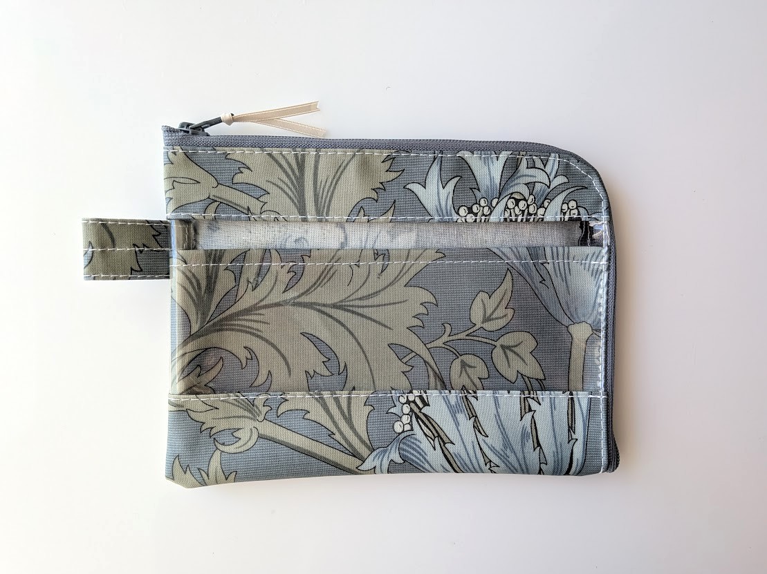 仕切り付きA6 L字ファスナークリアポーチ お薬手帳 アネモネ ウィリアムモリス ラミネート