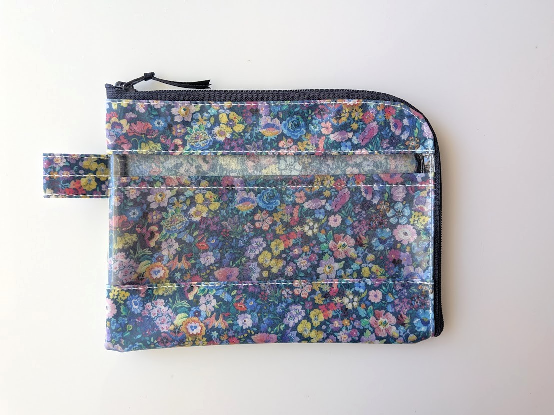 ★受注制作★ 仕切り付きA6(お薬手帳)カード入れつきL字ファスナークリアポーチ リバティ ラミネート お好みの柄でオーダーを受けます