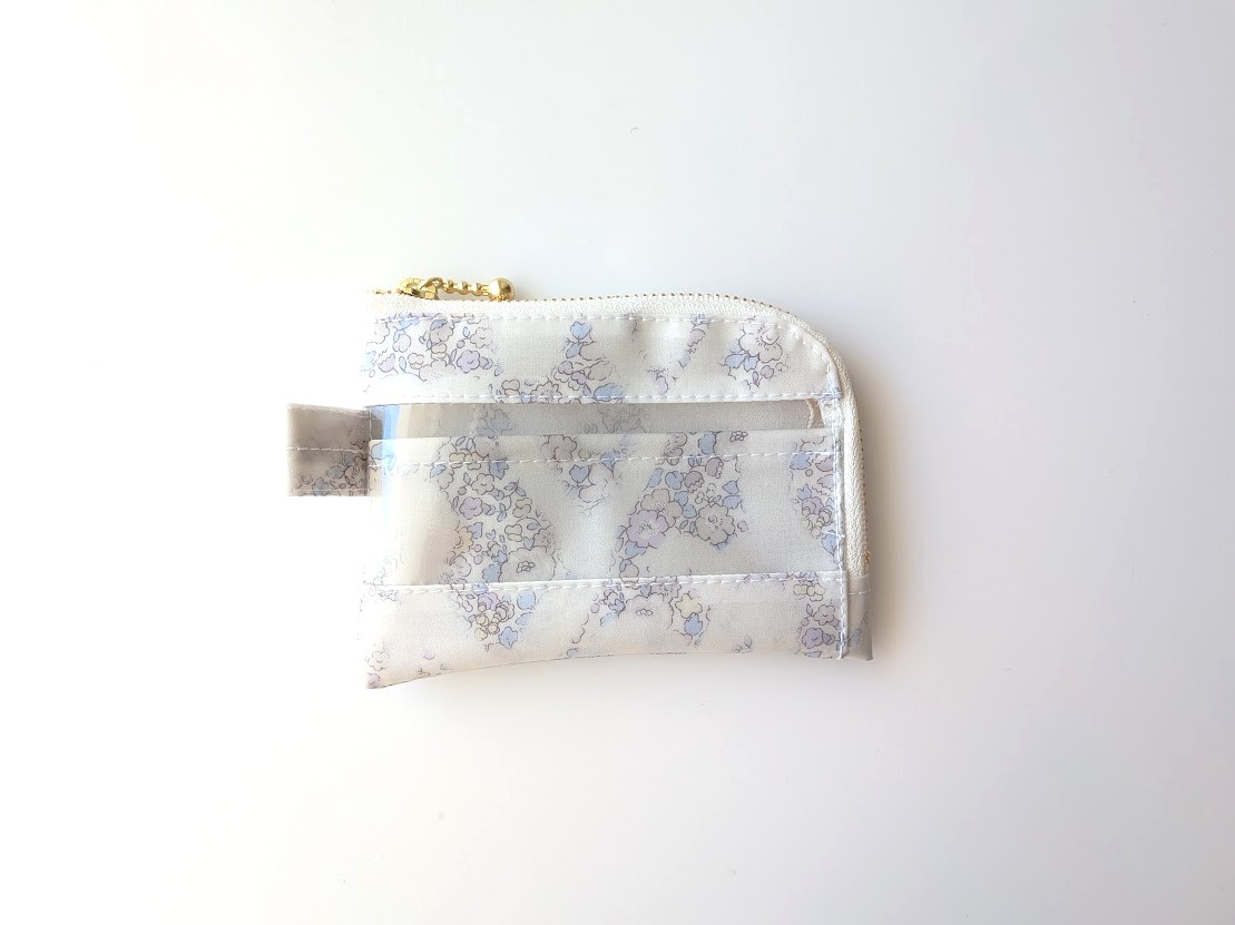 xxs-3 カードサイズ クリアポーチ アイアンシブロッサム リバティ ラミネート ♡リバティプリントとしても有名なフィービー、エマ・アンド・ジョージーナ、ケイティ・アンド・ミリーを使ってアイアンシを再構築