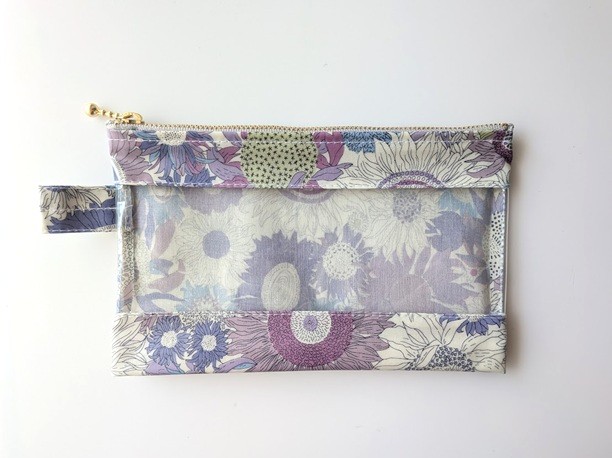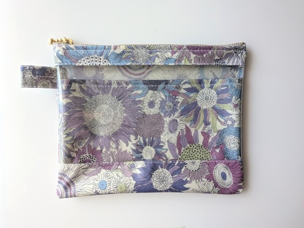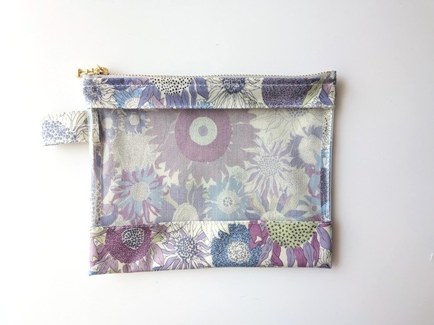 仕切りつきM-3 18.5×15 クリアポーチ スモールスザンナ リバティ ラミネート ♡大小さまざまなひまわり