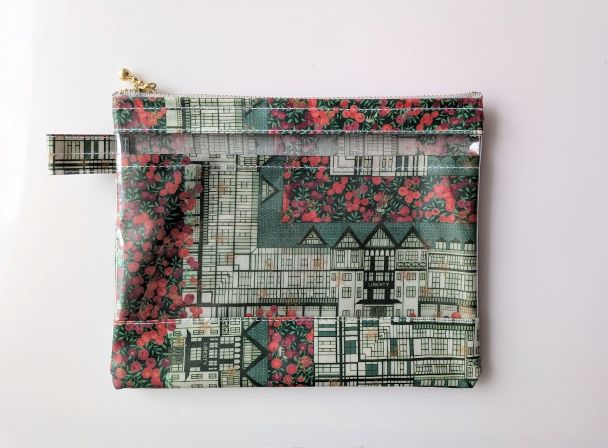 仕切り付き A5 L字ファスナークリアポーチ エデナム リバティ ラミネート ♡スペースのある構図と明るく軽快な柄