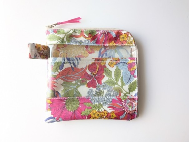★新商品★ カード入れ付き A6(お薬手帳)L字ファスナークリアポーチ 仕切り付き リバティ ラミネート ワイルドフラワーズ