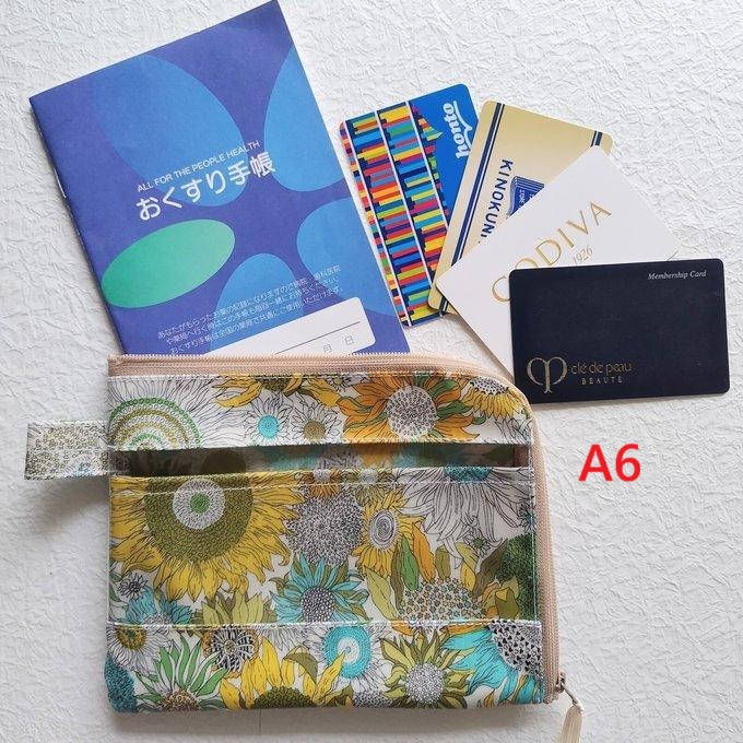 ★受注制作★ 仕切り付きA6(お薬手帳)カード入れつきL字ファスナークリアポーチ リバティ ラミネート お好みの柄でオーダーを受けます