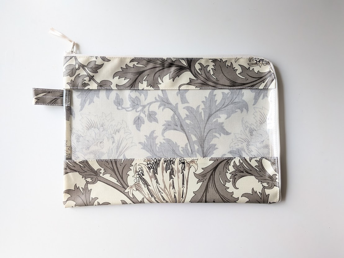 B5 L字ファスナークリアポーチ ピンパネル ウィリアムモリス ラミネート