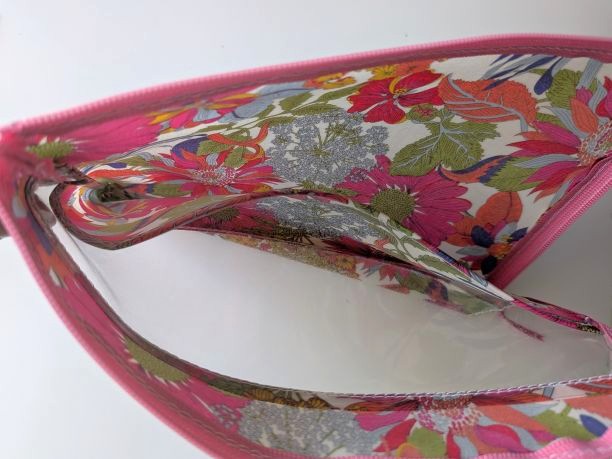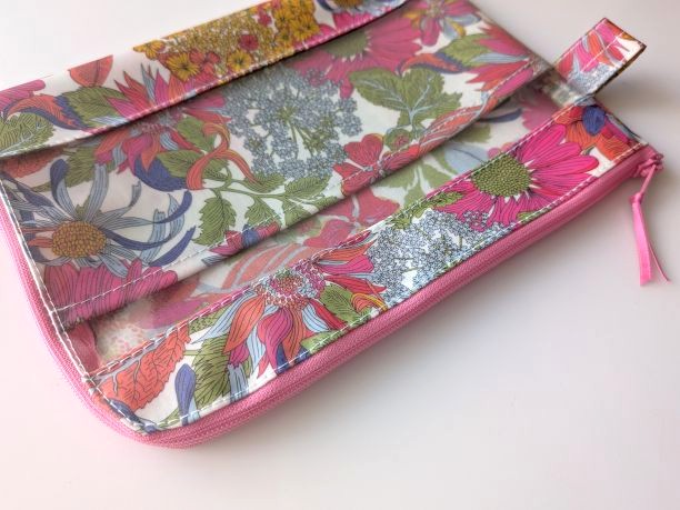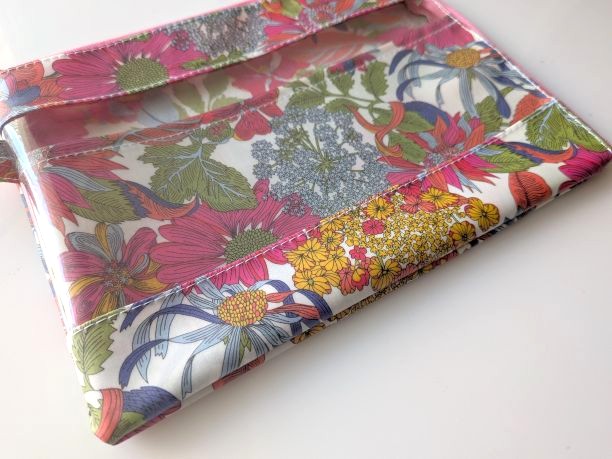 仕切り付き B6 L字ファスナークリアポーチ アンジェリカガーラ リバティ ラミネート ♡大胆な大花
