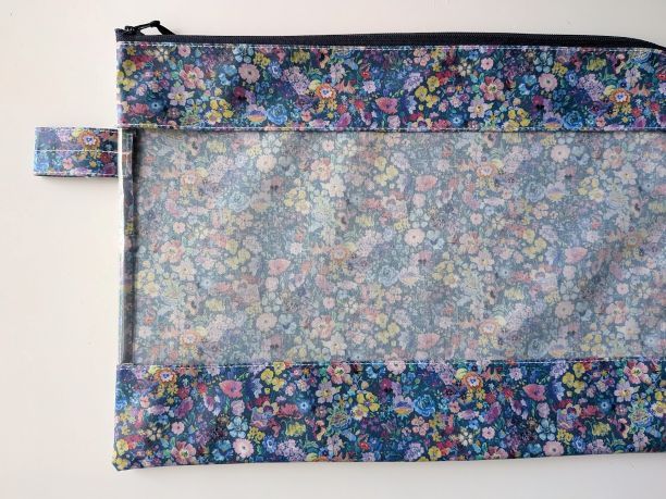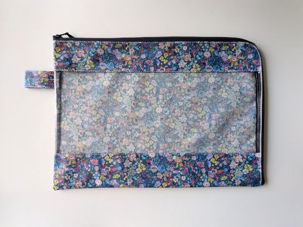 A4 L字ファスナークリアポーチ クラシックガーデン リバティ ラミネート ♡リバティのクラシック・デザインから厳選された花々を縮小しソフトな水彩で手描きし、クラシックな花々の草原を表現