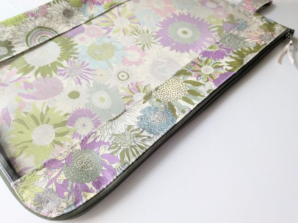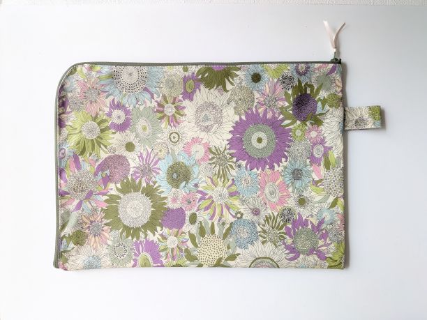 A4 L字ファスナークリアポーチ スモールスザンナ リバティ ラミネート ♡大小さまざまなひまわり | リバティ×リバティ