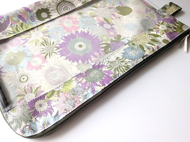 A4 L字ファスナークリアポーチ スモールスザンナ リバティ ラミネート ♡大小さまざまなひまわり