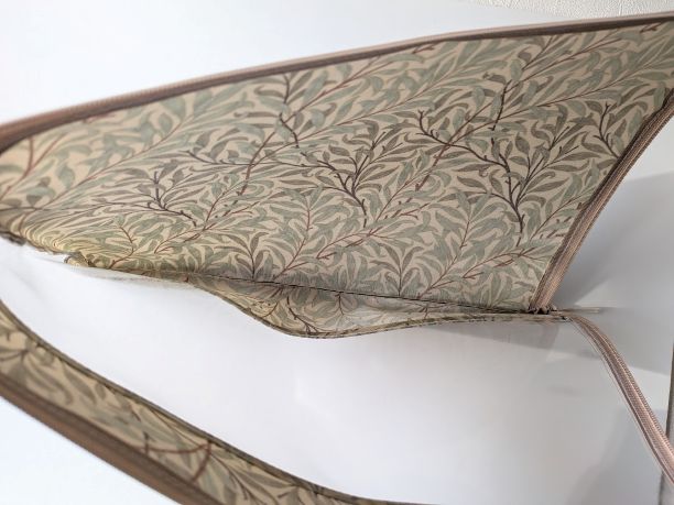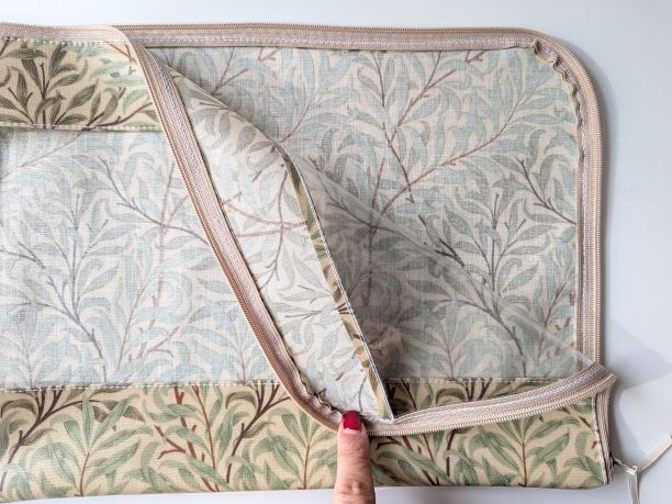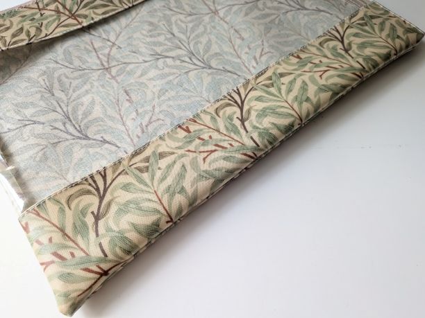 この生地はリバティのラミネートよりもやや固めでしっかりしており、大切な物をしっかり守るのに適しています。