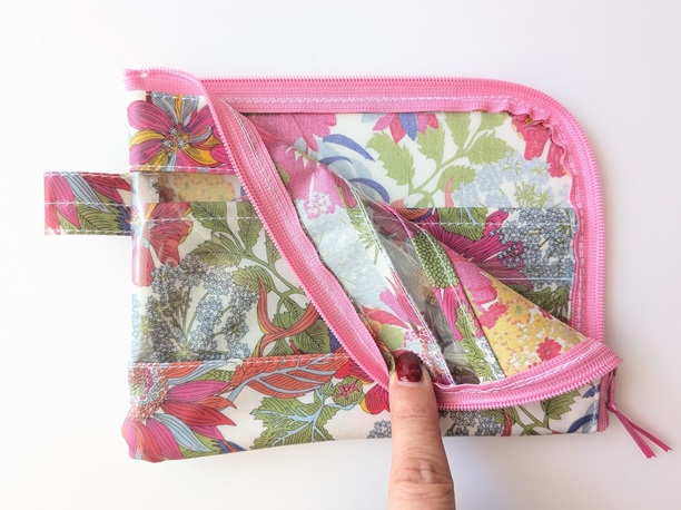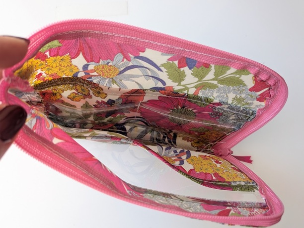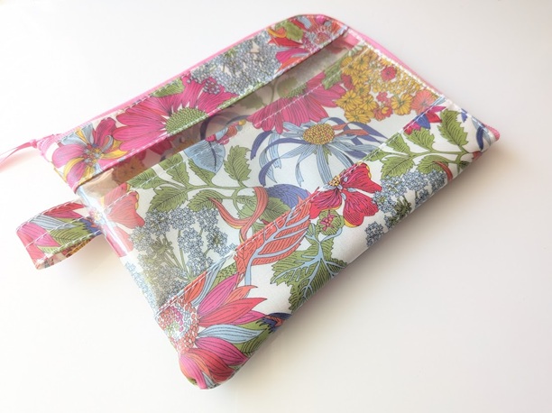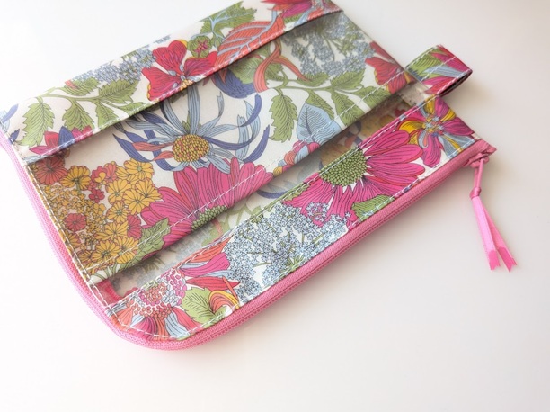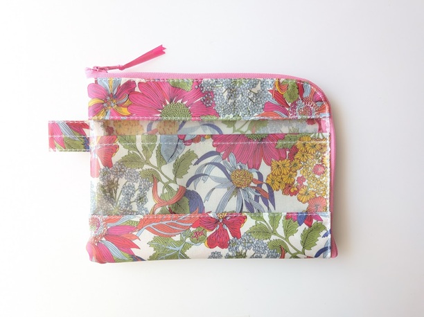★新商品★ カード入れ付き A6(お薬手帳)L字ファスナークリアポーチ 仕切り付き リバティ ラミネート アンジェリカガーラ