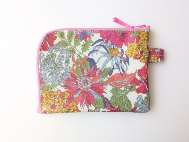 L字型にファスナーが開くA6サイズのポーチ