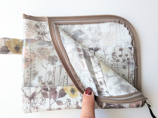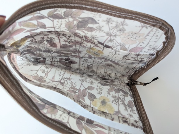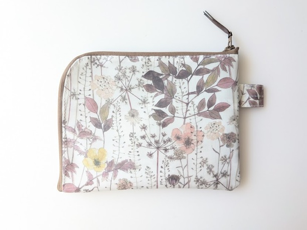 L字型にファスナーが開くA6サイズのポーチ