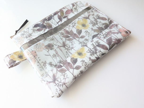 ★新商品★ カード入れ付き A6(お薬手帳)L字ファスナークリアポーチ 仕切り付き リバティ ラミネート イルマ
