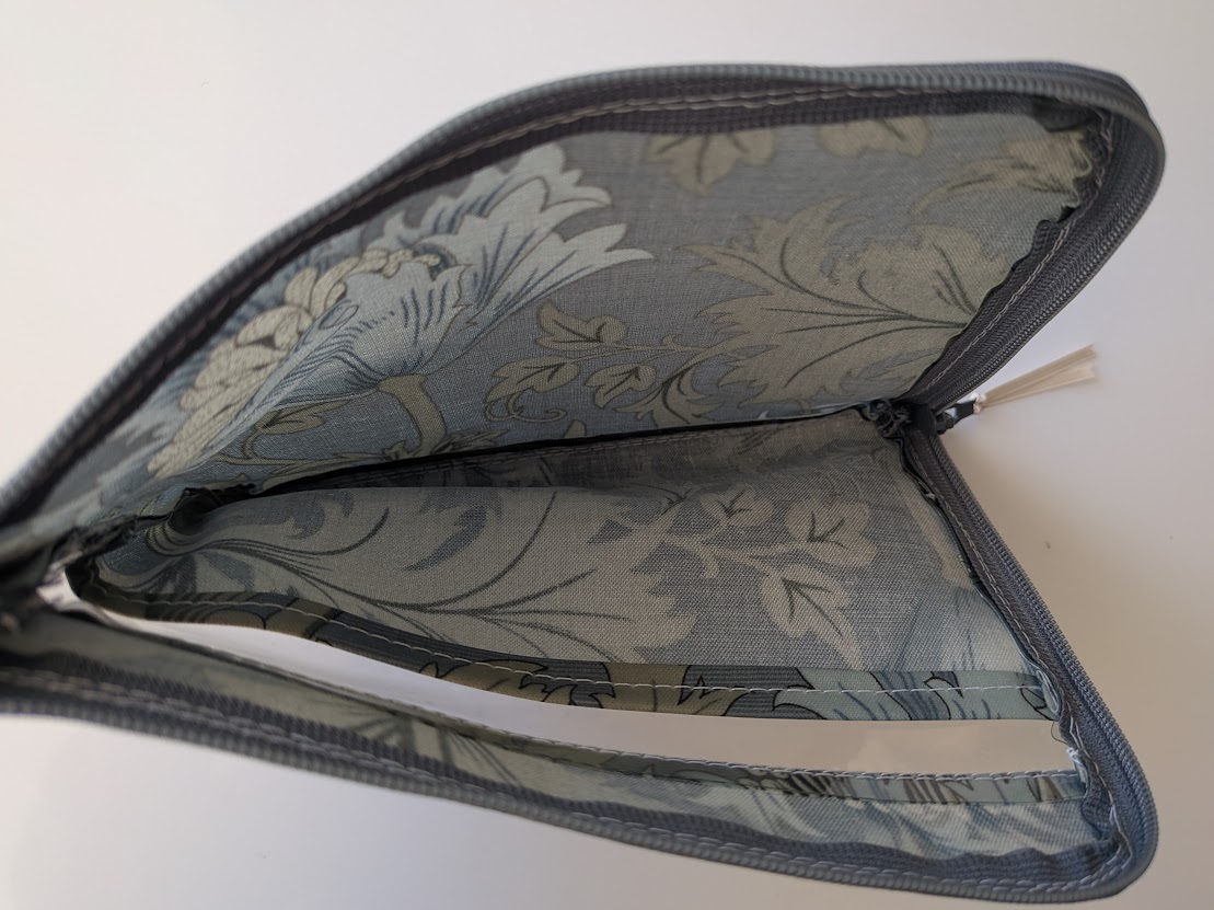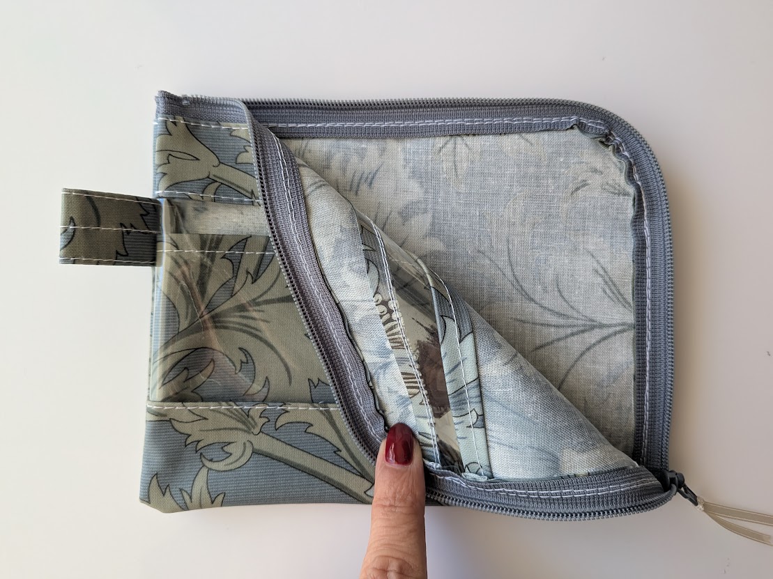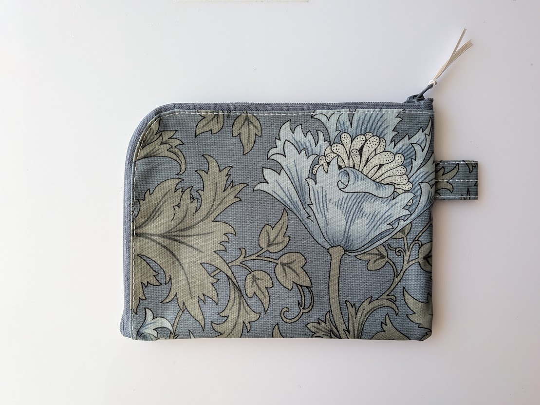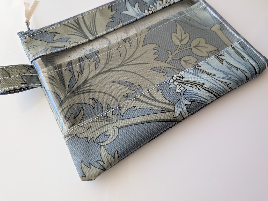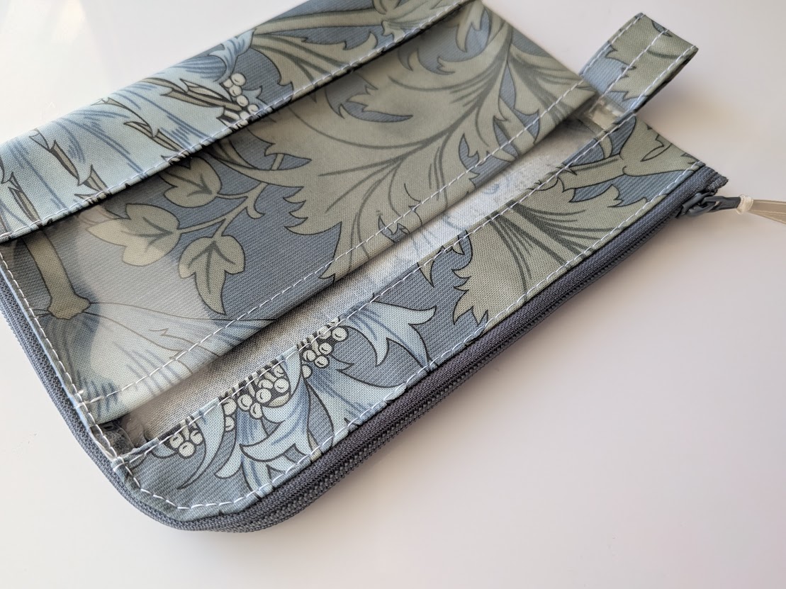 仕切り付きA6 L字ファスナークリアポーチ お薬手帳 アネモネ ウィリアムモリス ラミネート