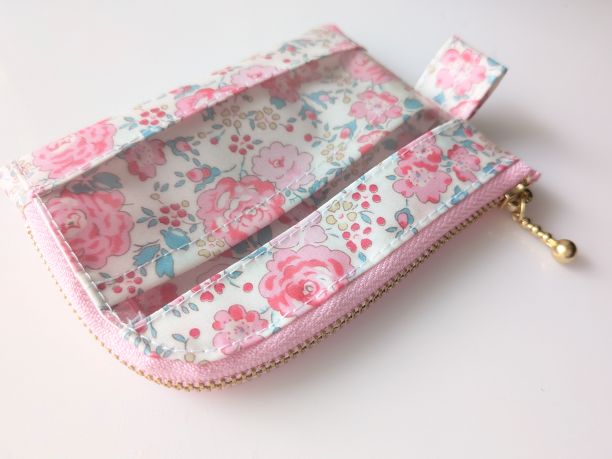 仕切り付きA7 L字ファスナークリアポーチ フェリシテ リバティ ラミネート カードサイズ ♡密集した丸みのあるふっくらとした花柄が印象な柄
