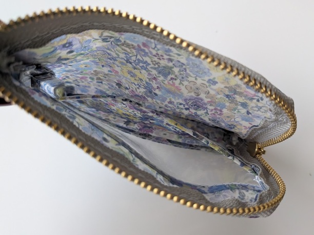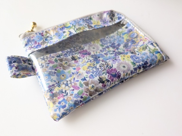 仕切り付きA7 L字ファスナークリアポーチ クラシックガーデン リバティ ラミネート カードサイズ ♡リバティで最も有名で愛されている定番柄の見事な饗宴です