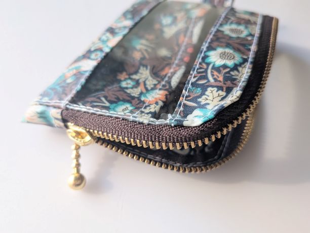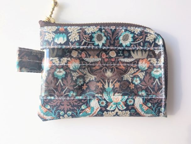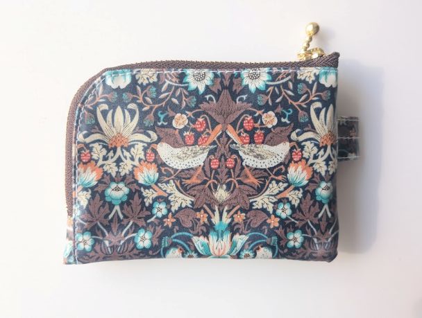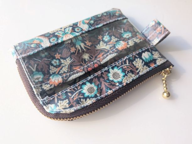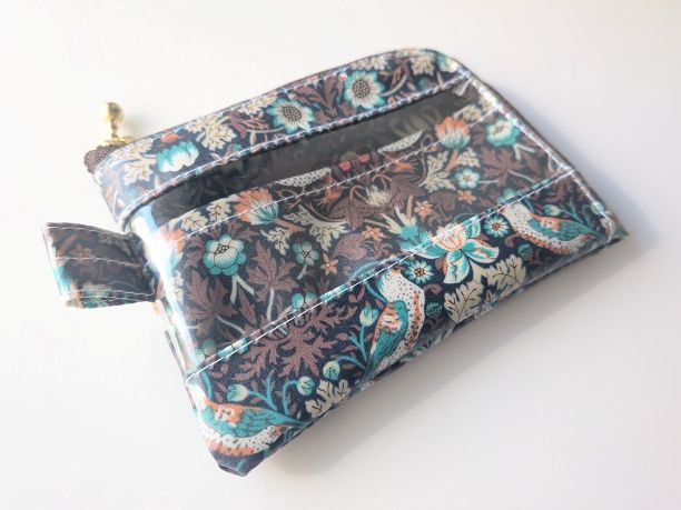 仕切り付きA7 L字ファスナークリアポーチ ストロベリーシーフ リバティ ラミネート カードサイズ ♡ウィリアムモリス柄 | リバティ×リバティ