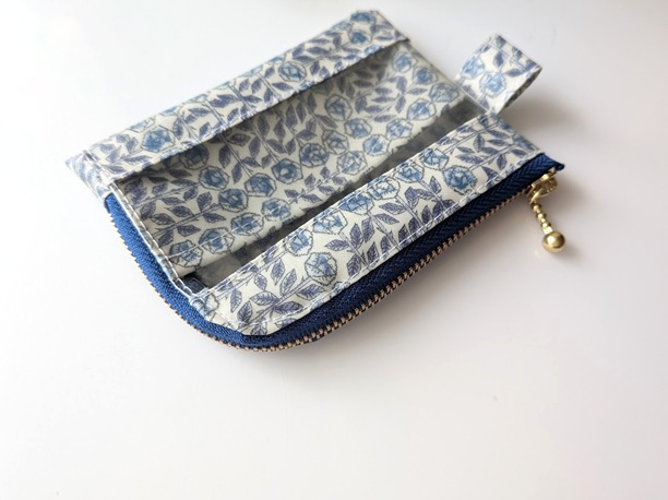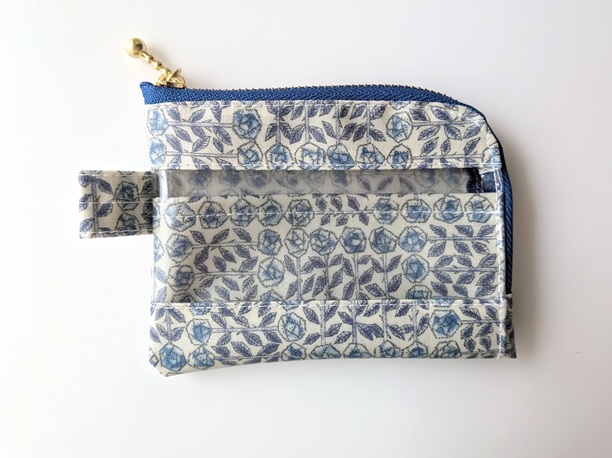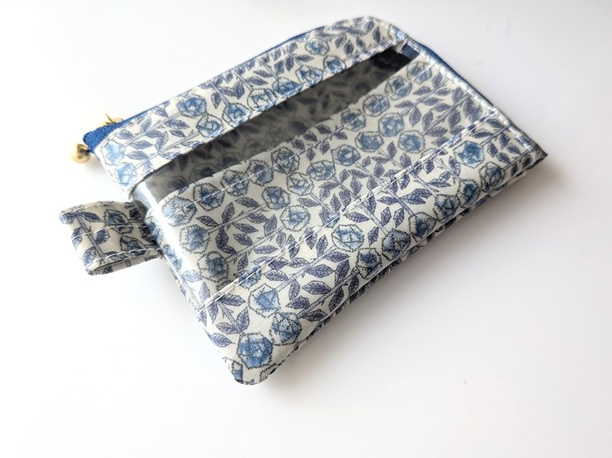 仕切り付きA7 L字ファスナークリアポーチ スリーピングローズ リバティ ラミネート カードサイズ ♡皆川明氏とのコラボ