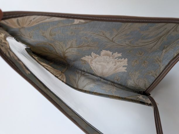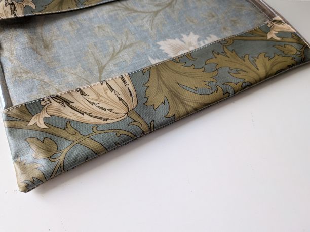 この生地はリバティのラミネートよりもやや固めでしっかりしており、大切な物をしっかり守るのに適しています。