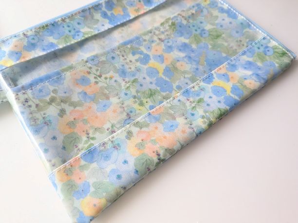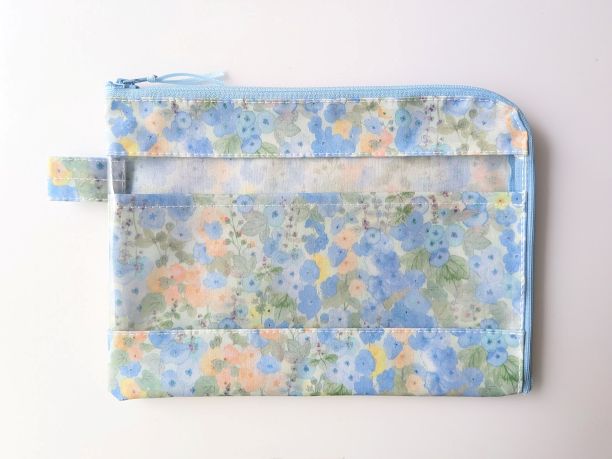 仕切り付き B6 L字ファスナークリアポーチ ホリーホックス リバティ ラミネート ♡典型的なイングリッシュガーデンに咲く沢山のタチアオイからインスピレーションを受け水彩で描かれました