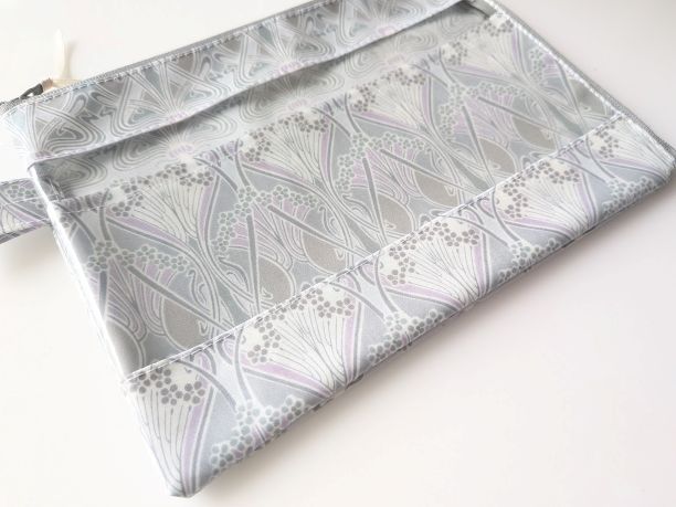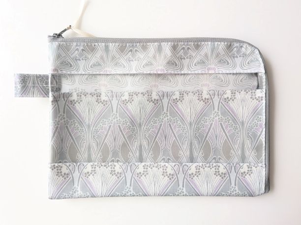 仕切り付き B6 L字ファスナークリアポーチ アイアンシ リバティ ラミネート ♡アイアンシとは、ギリシャ語でスミレや紫の小さな花を意味するため、スミレをモチーフにしたとも思われています