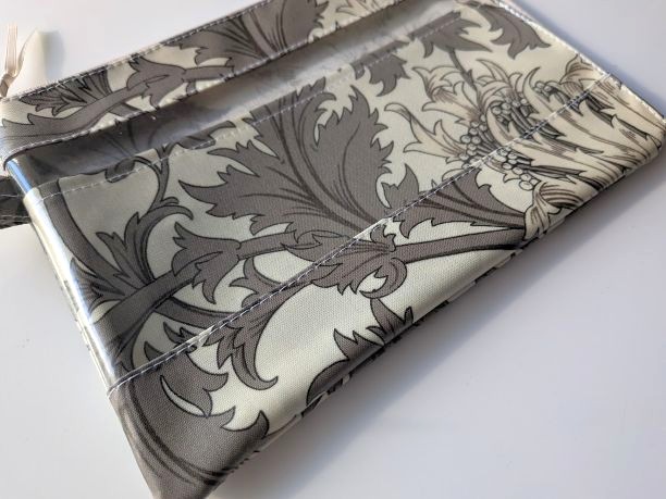 この生地はリバティのラミネートよりもやや固めでしっかりしており、大切な物をしっかり守るのに適しています。 そのため、リバティの商品よりも若干重くなります。
