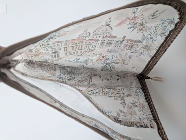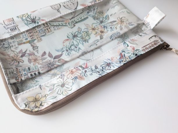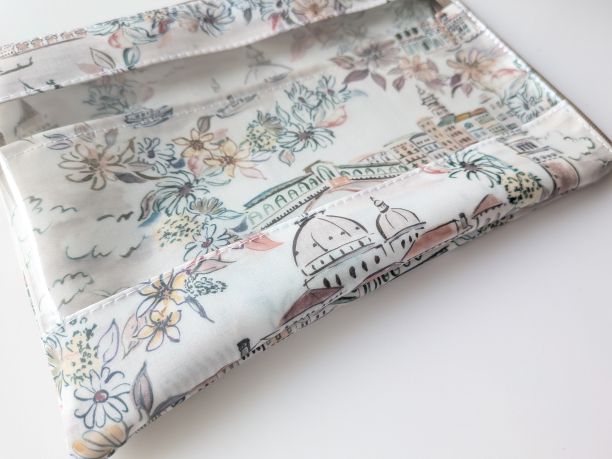 仕切り付き B6 L字ファスナークリアポーチ ヴェネツィア リバティ ラミネート ♡街の歴史的な建築、ロマンチックな橋、象徴的なゴンドラを魅力的な花のビネットの中に描いています