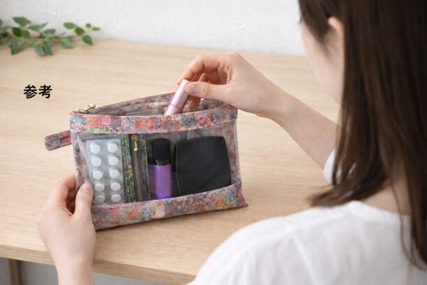 仕切りつきM-3 18.5×15 クリアポーチ アンジェリカガーラ リバティ ラミネート ♡大胆な大花