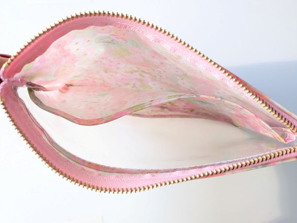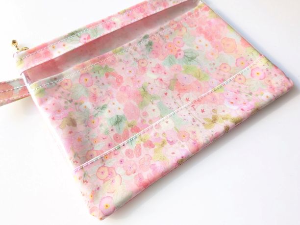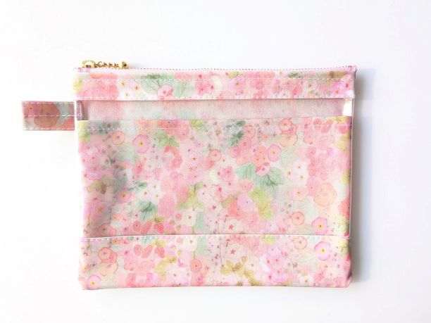 仕切りつきM-3 18.5×15 クリアポーチ ホリーホックス リバティ ラミネート ♡典型的なイングリッシュガーデンに咲く沢山のタチアオイからインスピレーションを受け水彩で描かれました
