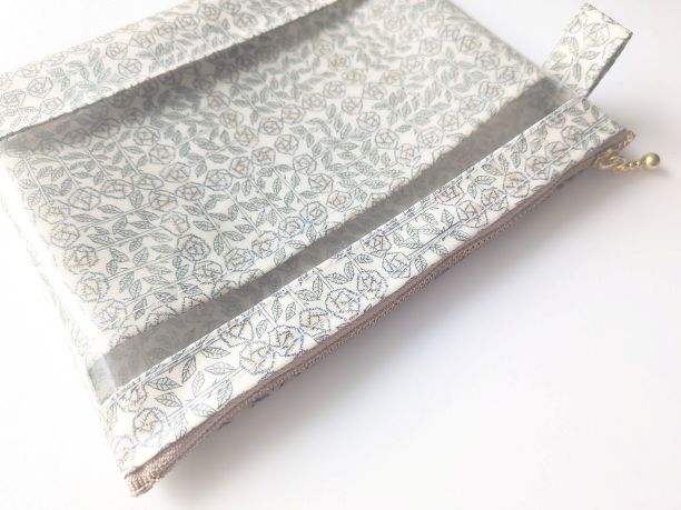 仕切りつきM-3 18.5×15 クリアポーチ スリーピングローズ リバティ ラミネート ♡皆川明氏とのコラボ
