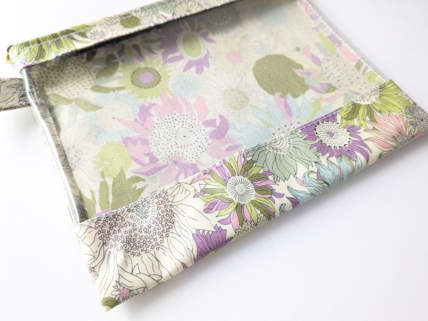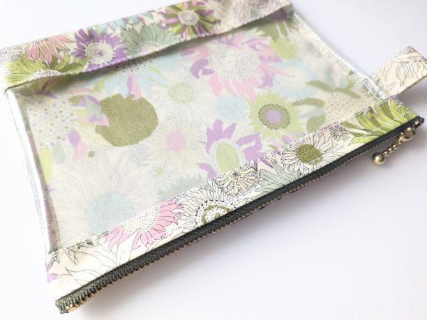 M-3 18.5×15 クリアポーチ スモールスザンナ リバティ ラミネート ♡大小さまざまなひまわり