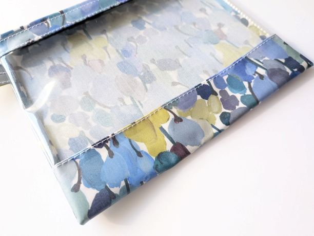 M-3 18.5×15 クリアポーチ チューリップフィールズ リバティ ラミネート ♡重ねられた色に茎を書き加え、ダンスをしているようなチューリップへと変換されました