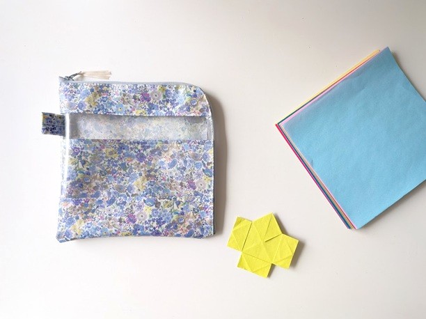 折り紙ポーチ L字ファスナークリアポーチ クラシックガーデン リバティ ラミネート  ♡リバティで最も有名で愛されている定番柄の見事な饗宴です