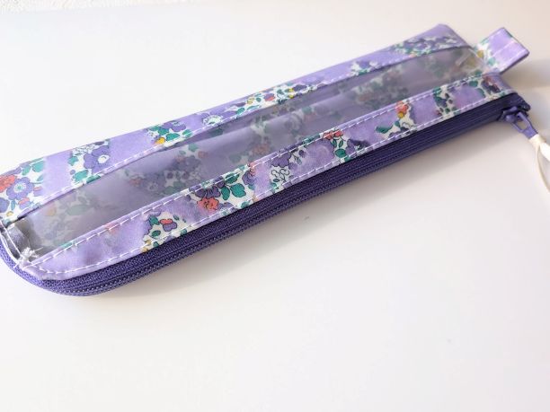 ペンケース細身 歯ブラシケース L字ファスナー クリアポーチ ベッツィアングラフィティ リバティ ラミネート ♡「ベッツィ」をフレッシュで楽しくアレンジしました