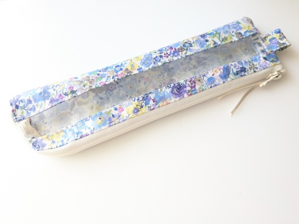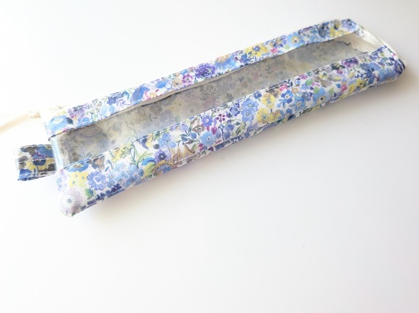 【現品限り・販売終了】ペンケース細身 歯ブラシケース L字ファスナー クリアポーチ クラシックガーデン リバティ ラミネート ♡リバティで最も有名で愛されている定番柄の見事な饗宴