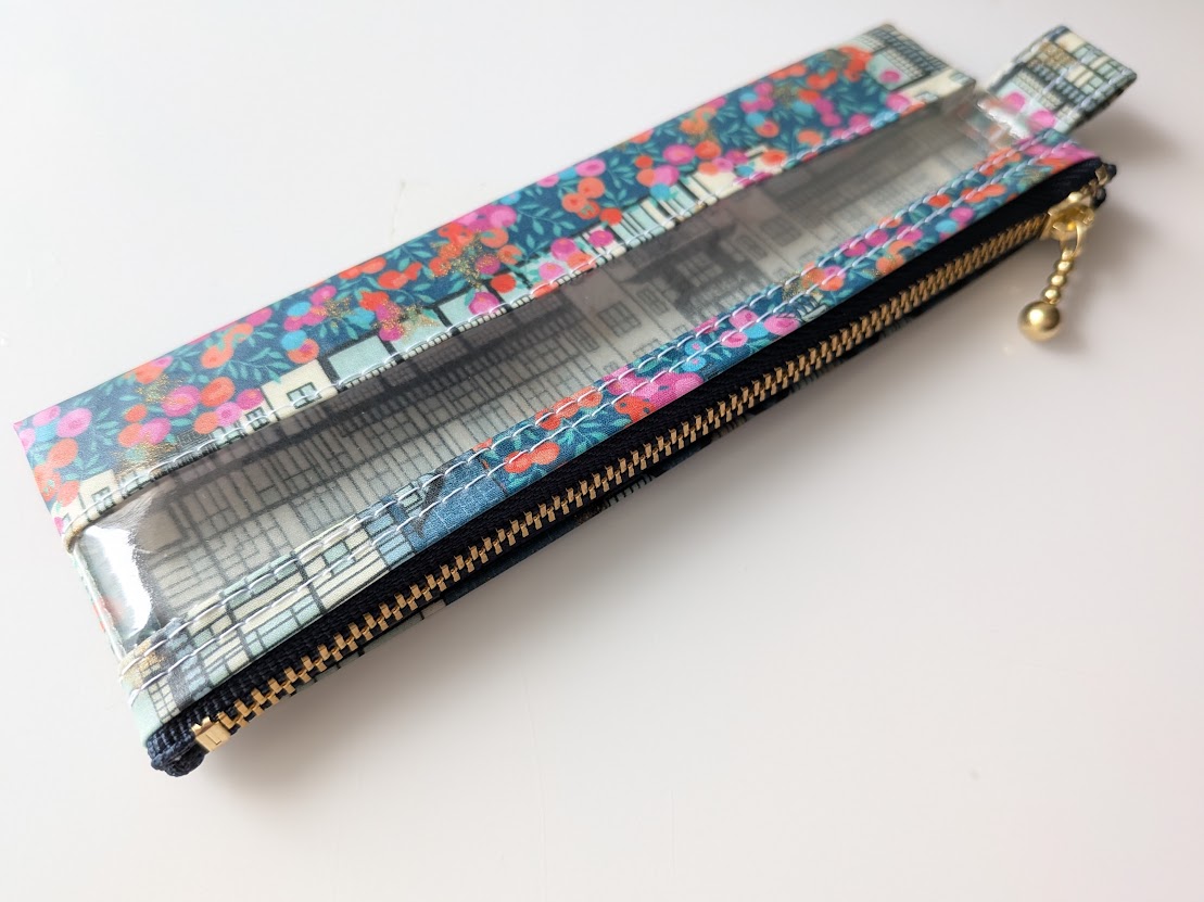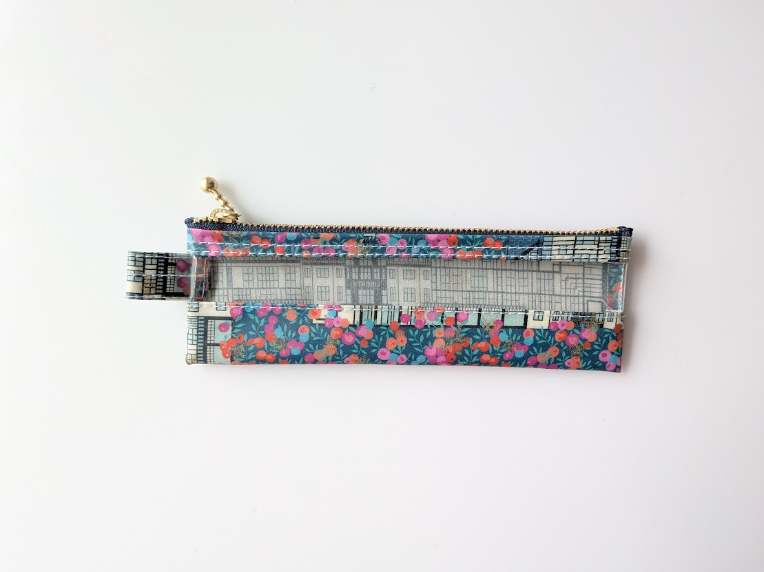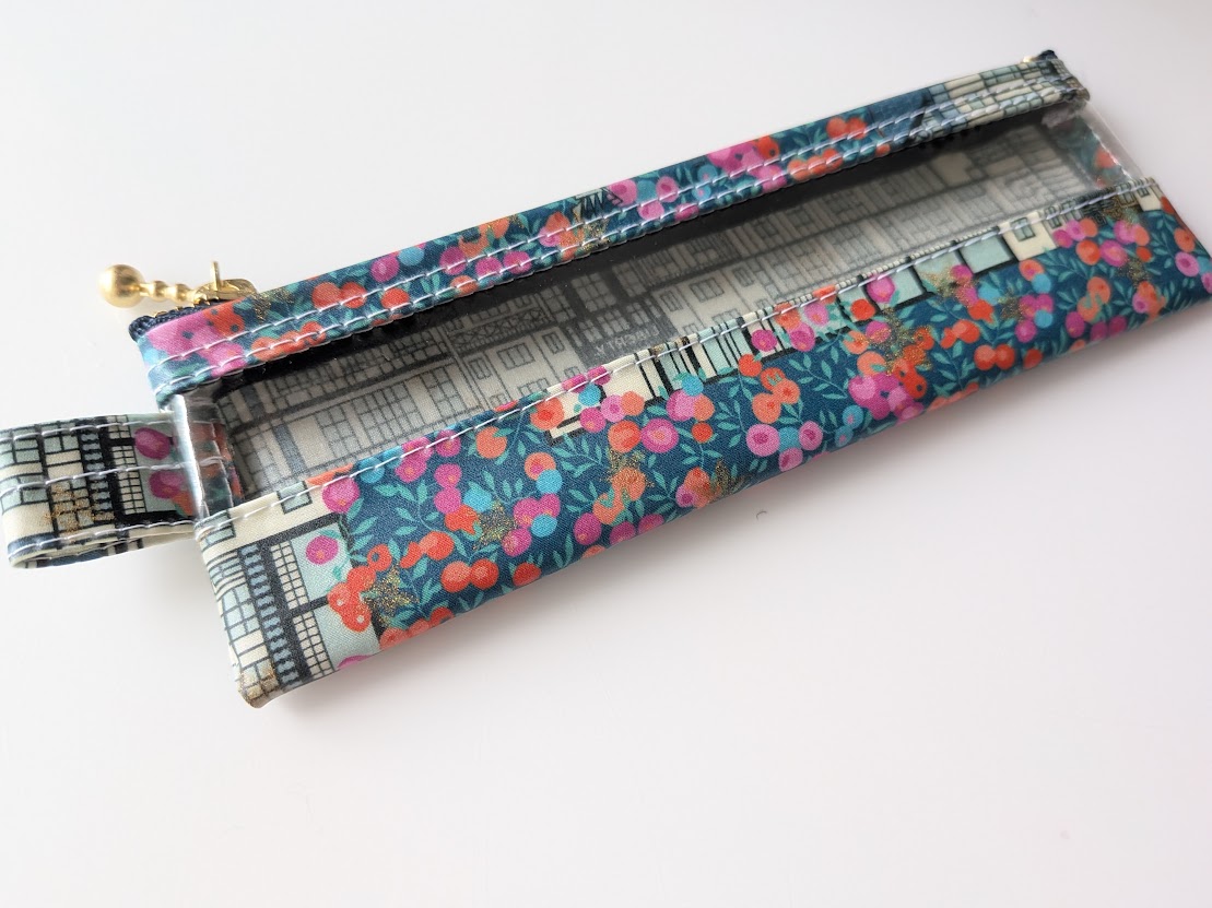 ペンケース小 メガネケース クリアポーチ チューダーベリー リバティ ラミネート ♡「チューダー・ベル」と「ウィルトシャー・ベリー」を独自に組み合わせ、ひねりを加えたひと柄